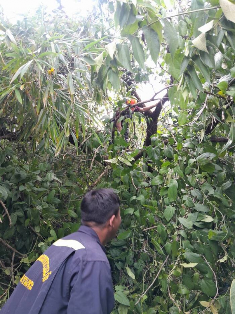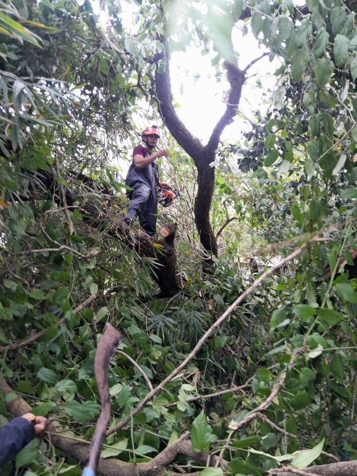 14.40 น. งานป้องกันฯ เข้าตัดกิ่งไม้ที่ล้มทับหลังคาบ้านและสายไฟของชาวบ้าน หมู่ 1 บ้านขนงพระเหนือ