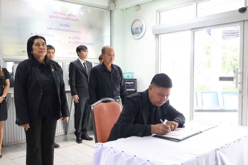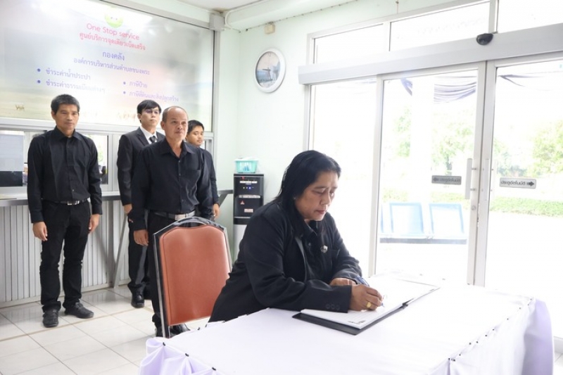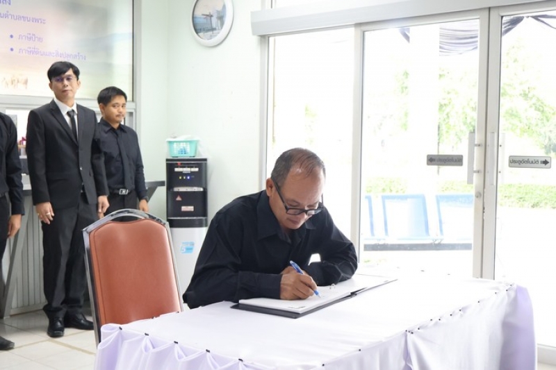 คณะผู้บริหาร ข้าราชการ และผู้เข้าร่วม ร่วมยืนสงบนิ่งแสดงความอาลัยเป็นเวลา 1 นาที จากนั้น ได้ร่วมลงนามแสดงความอาลัย เพื่อเป็นการน้อมรำลึกในพระมหากรุณาธิคุณ และปฏิญาณตนว่าจะสืบสานแนวพระราชดำริ และดำรงตนให้เป็นประโยชน์ต่อประเทศชาติ เพื่อถวายเป็นพระราชกุศลแด่พระองค์ท่านสืบไป