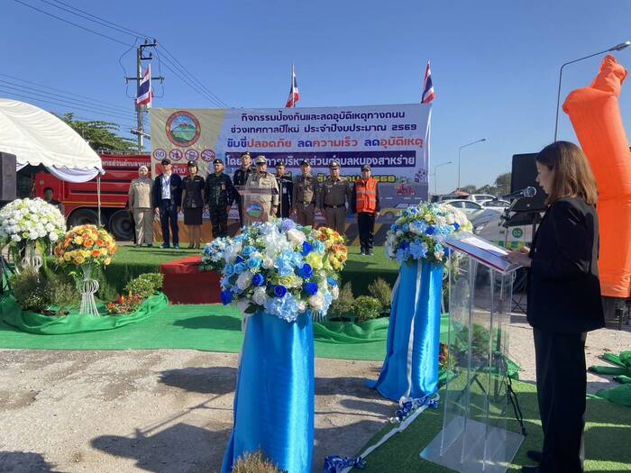 นายทองดี แดงบุญเรือง รองปลัด อบต.ขนงพระ เข้าร่วมกิจกรรมป้องกันและลดอุบัติเหตุทางถนน ช่วงเทศกาลปีใหม่ ประจำปีงบประมาณ 2569