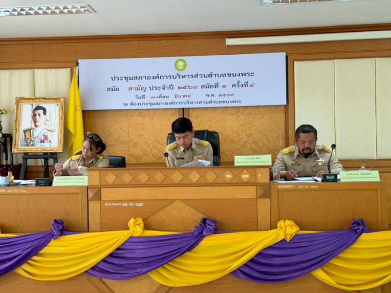 10.00 น. คณะผู้บริหาร พร้อมสมาชิกสภาองค์การบริหารส่วนตำบลขนงพระ ประชุมสภาองค์การบริหารส่วนตำบลขนงพระ สมัยสามัญ ประจำปี 2569 สมัยที่ 1 ครั้งที่ 4 ณ ห้องประชุมองค์การบริหารส่วนตำบลขนงพระ