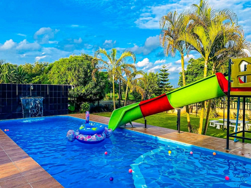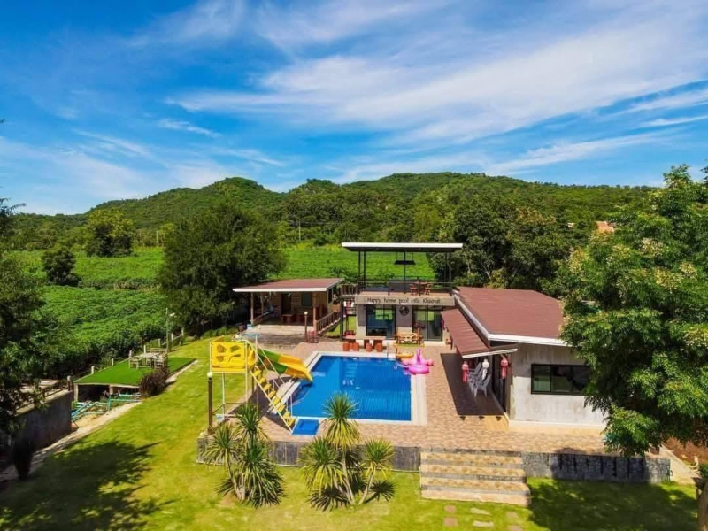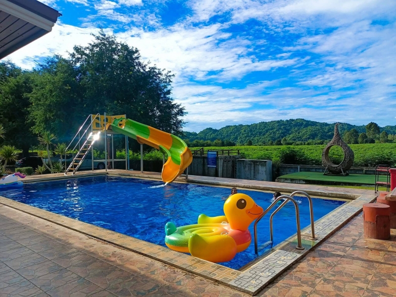 บ้านพักเหมาหลังส่วนตัวที่สุด ท่ามกลางธรรมชาติ สระว่ายน้ำส่วนตัว มีความลึกเด็ก สไลด์เดอร์ โต๊ะพลู คาราโอเกะ มีอาหารเช้า ทำครัวได้ ปิ้งย่างได้ พื้นที่กว้างขวางมากๆ รถบัสใหญ่เข้าได้