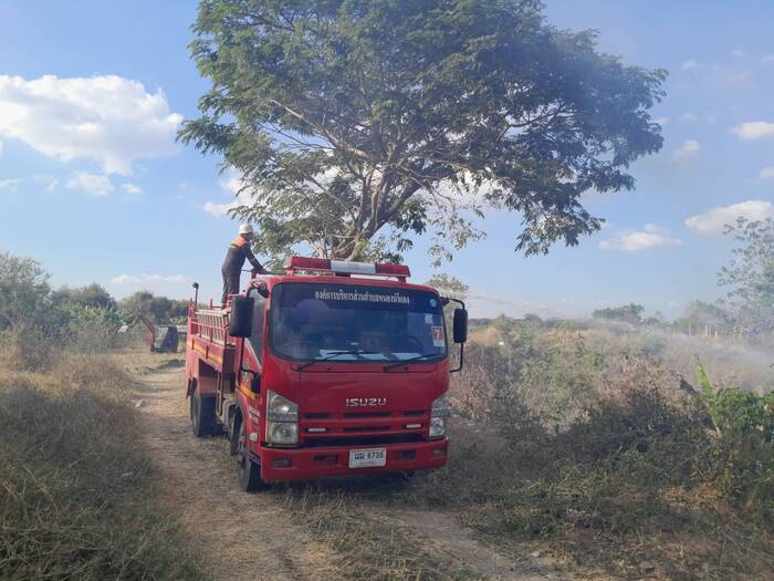 งานป้องกันและบรรเทาสาธารณภัย เข้าระงับเหตุเพลิงไหม้ บริเวณบ่อขยะทุ่งลี หมู่ 3 บ้านบุกระเฉด