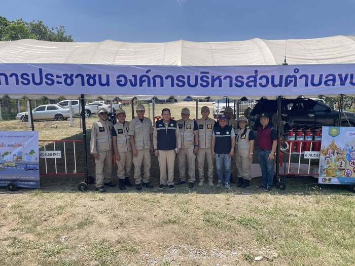 คณะผู้บริหาร ติดตามการเดินท่อสูบน้ำจากซัมเมอร์สมาถังแชมเปญใหม่ หมู่ 13 บ้านประดู่งาม